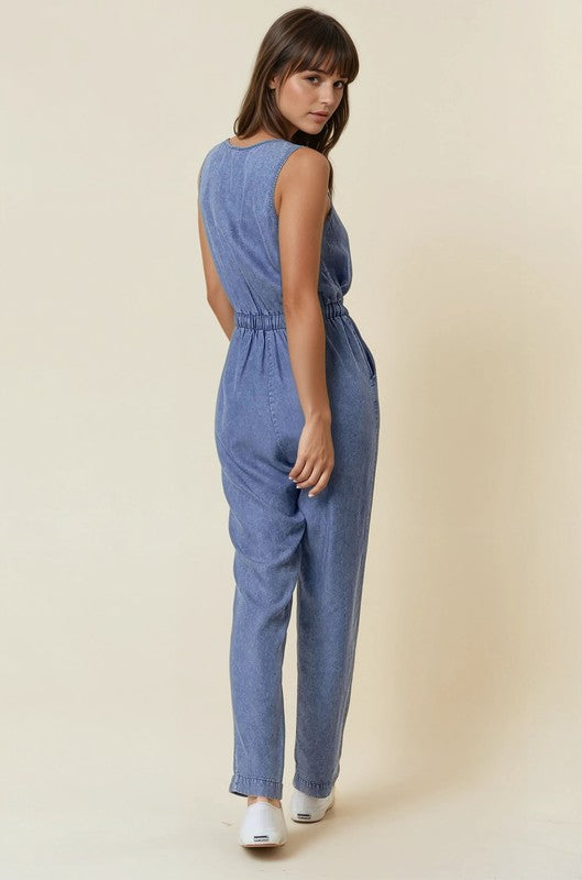 Dk Denim Waist Tie Jumpsuit